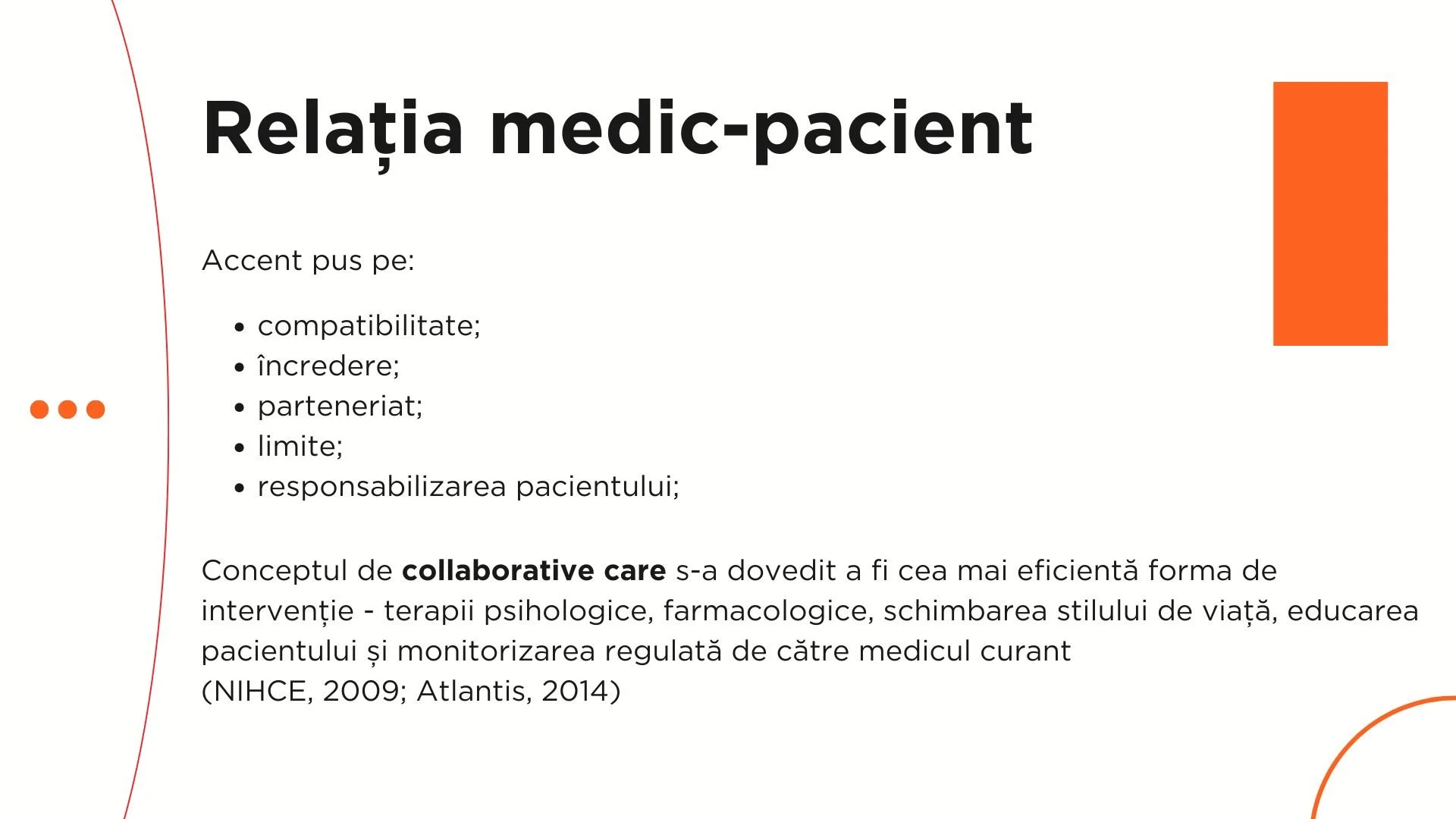 La fel de important este și cadrul în care se desfășoară această relație, setat cu seriozitate și respectat de ambele părți. Aici intră limitele stricte cu privire la confidențialitate, la durata consultului, la disponibilitatea medicului în afara programului de lucru și condițiile în care această disponibilitate există.