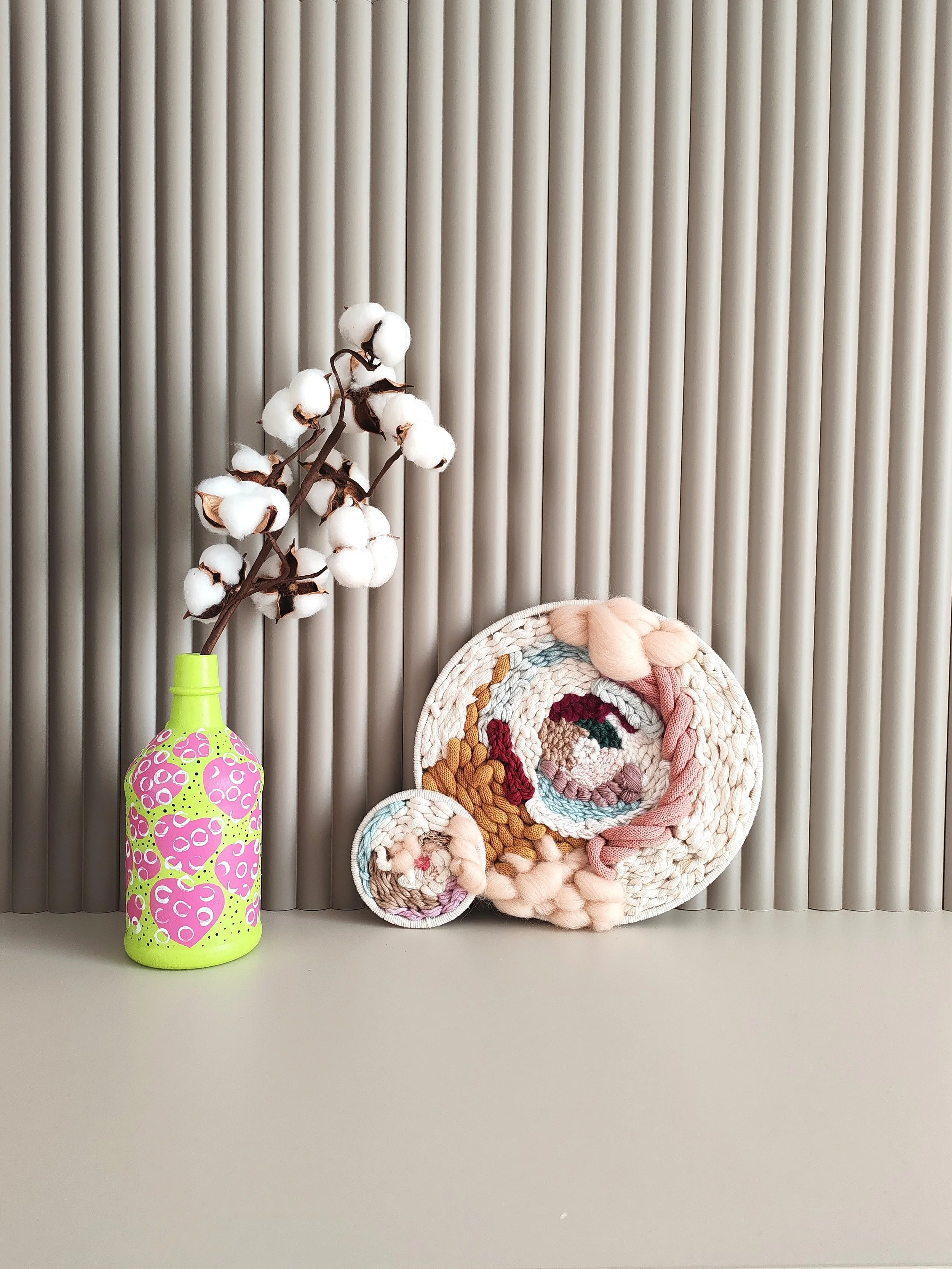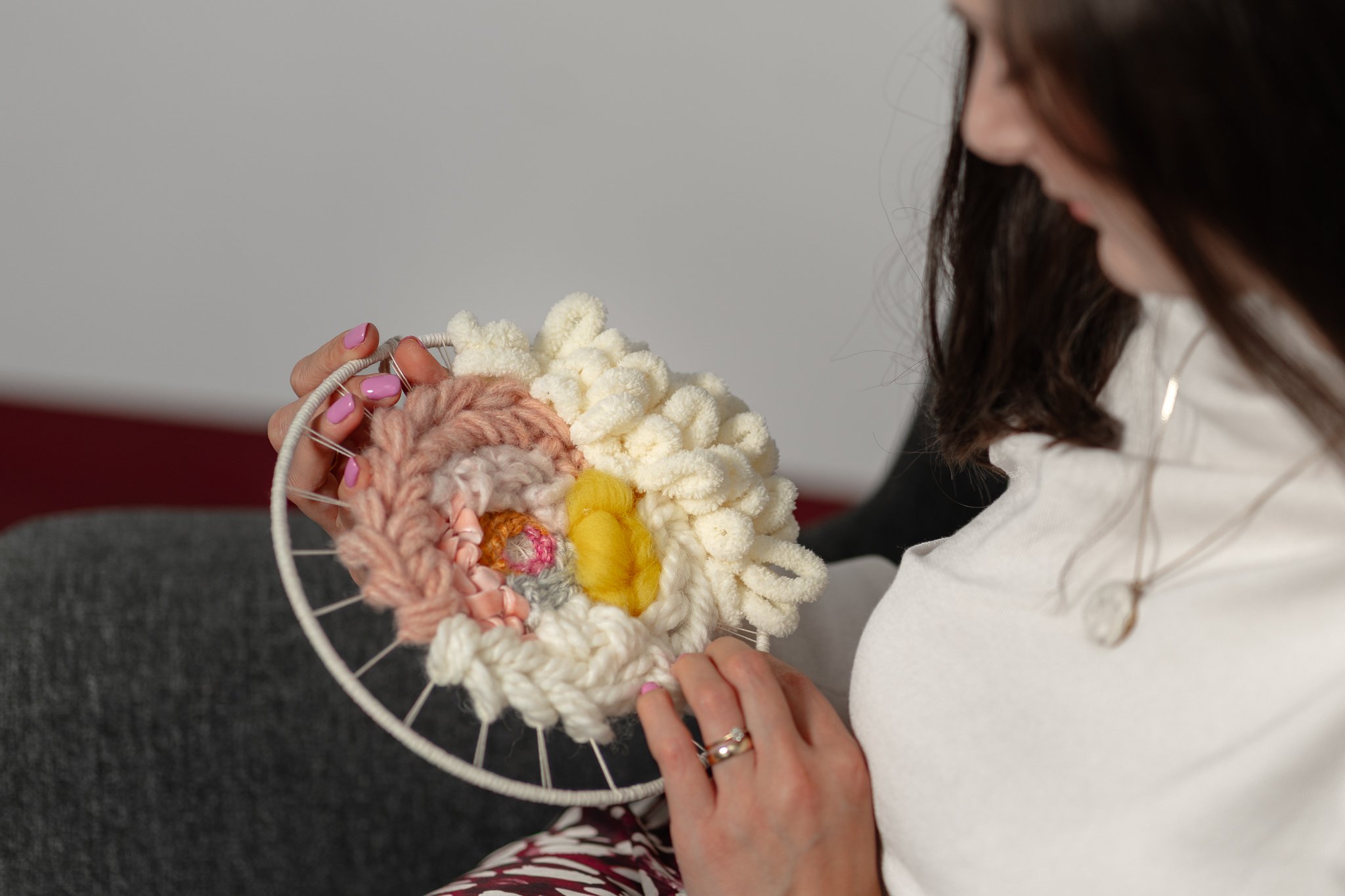 Vei lucra într-un ritm meditativ și vei crea un tablou textil rotund, de la început până la final. Procesul este însoțit de momente de reflecție și ghidaj psihoterapeutic.